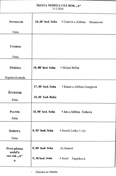 ZOZNAM VERIACICH PRE LITURGICKÉ ČÍTANIA V SPOLOČENSTVE NA SV. OMŠIACH